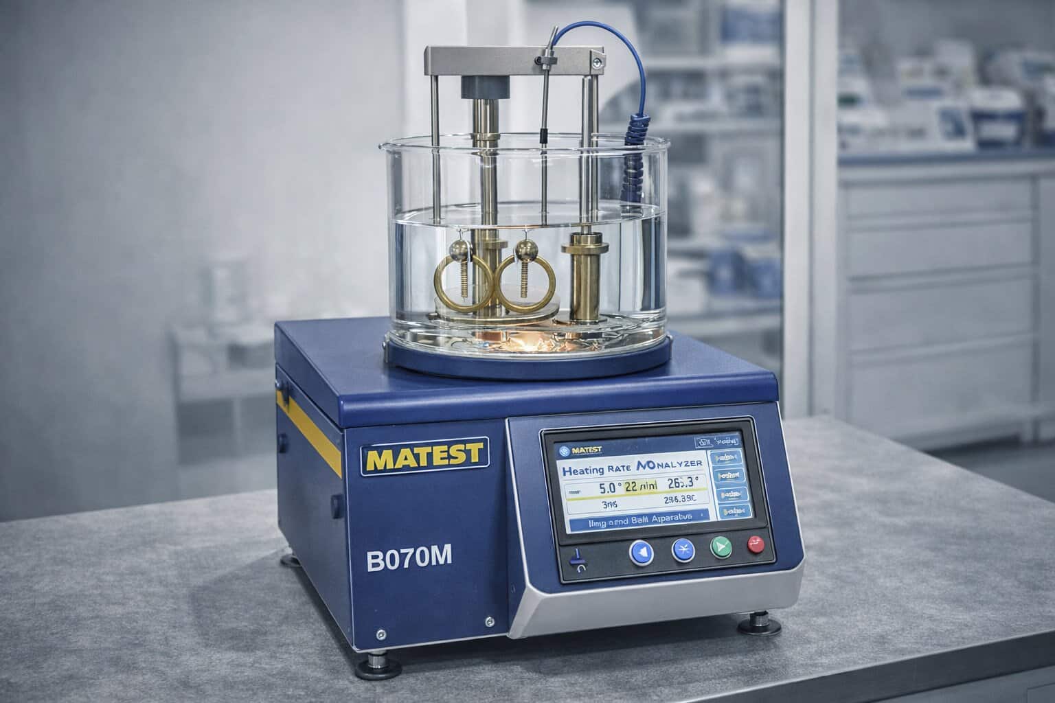 Температурата на средата във ваничката се повишава с постоянен градиент, който се поддържа автоматично от терморегулатора. Самото изпитване се извършва само по съответния стандарт за определяне на точка на омекване.